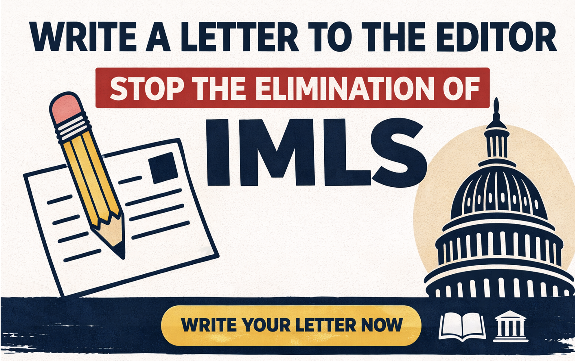 Use this page to craft and submit your letter to the editor. Encourage your neighbors to speak up, share why libraries and museums matter in your community, and call on Congress to reject the elimination of the Institute of Museum and Library Services.