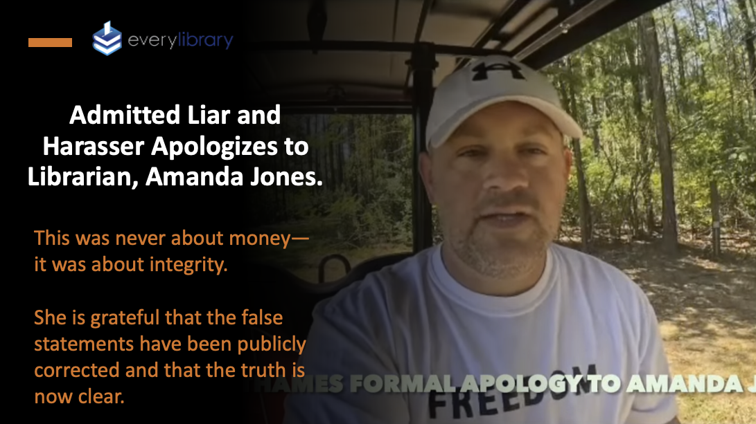 It’s not okay to target and defame librarians but people like Thames and Lunsford do it to score political points, defund libraries, and ban books. It's easy for them to raise money if they can scare the public with lies about librarians and libraries.